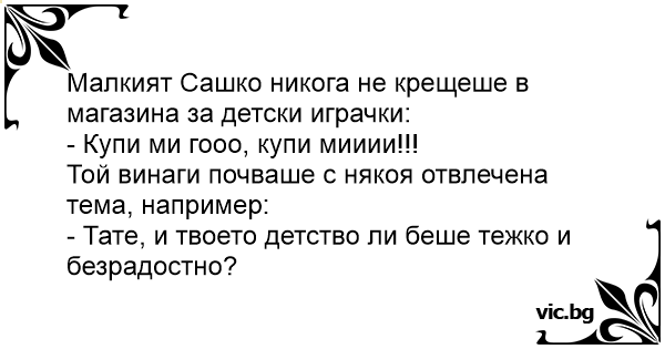 Малкият Сашко никога не крещеше в магазина за детски играчки:
