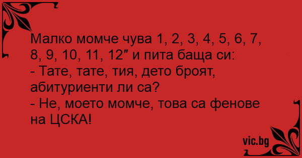 • Вицове от Facebook от нашата страница https://www.facebook.com/www.vic.bg