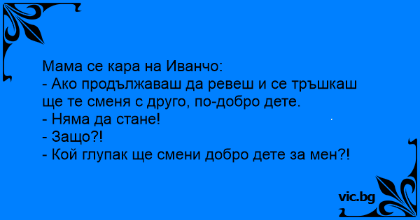 • Вицове от Facebook от нашата страница https://www.facebook.com/www.vic.bg