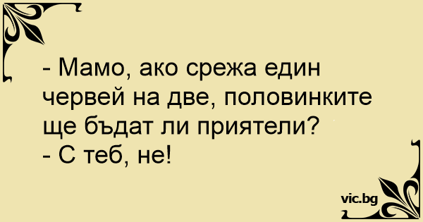 - Мамо, ако срежа един червей на две, половинките ще бъдат ли приятели?