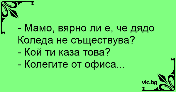- Мамо, вярно ли е, че дядо Коледа не съществува?