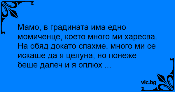 Мамо, в градината има едно момиченце, което много ми харесва.