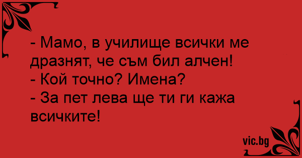 - Мамо, в училище всички ме дразнят, че съм бил алчен!