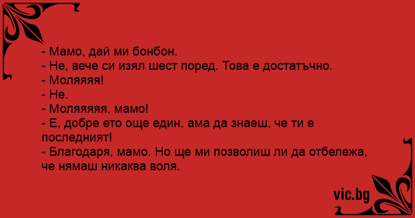 - Благодаря, мамо. Но ще ми позволиш ли да отбележа, че нямаш никаква воля.