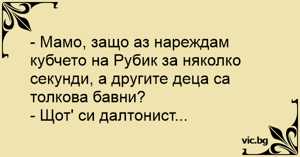 - Мамо, защо аз нареждам кубчето на Рубик за няколко секунди, а другите деца са толкова бавни?
