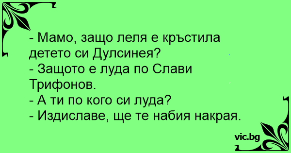 - Мамо, защо леля е кръстила детето си Дулсинея?