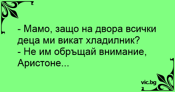 - Мамо, защо на двора всички деца ми викат хладилник?