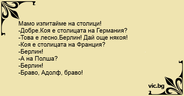 Вицове от Facebook от нашата страница https://www.facebook.com/www.vic.bg