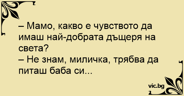 – Мамо, какво е чувството да имаш най-добрата дъщеря на света?