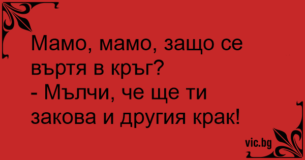 Un enfant dit à sa mère : - Maman, j'en ai marre de tourner en rond ! Et sa mère de lui répondre : - Ta gueule sinon j'te cloue l'autre pied!