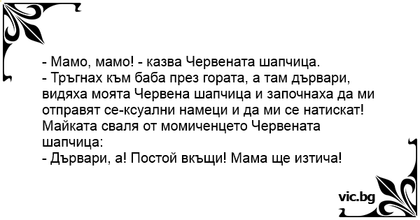 - Мамо, мамо! - казва Червената шапчица.