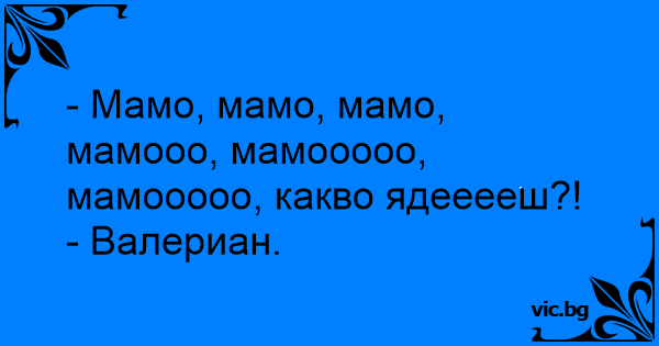 - Мамо, мамо, мамо, мамооо, мамооооо, мамооооо, какво ядееееш?!