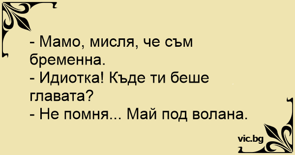 - Mama, se Vaita o blonda, am ramas insarcinata! - Insarcinata?!... Unde ti-a fost capul? - Cum Unde, pe perna.