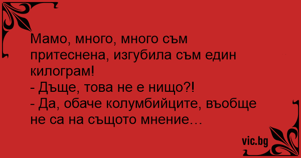 Мамо, много, много съм притеснена, изгубила съм един килограм!
