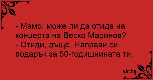 - Мамо, може ли да отида на концерта на Веско Маринов?