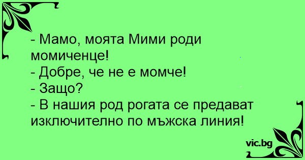 • Вицове от Facebook от нашата страница https://www.facebook.com/www.vic.bg