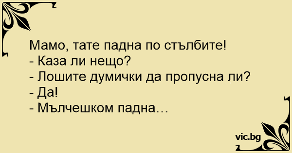 - Мама !!! Батько зі сходів впав !!!