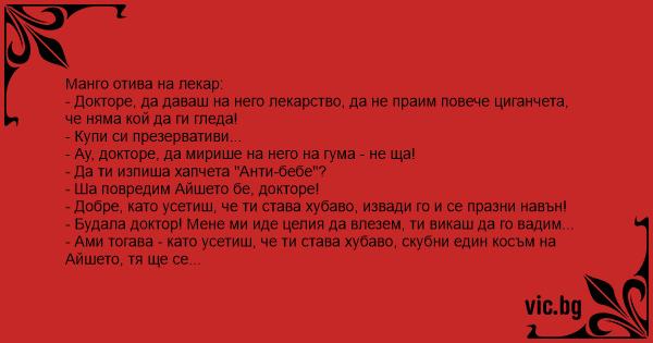 - Докторе, да даваш на него лекарство, да не праим повече циганчета, че няма кой да ги гледа!