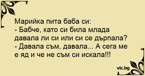 - Бабче, като си била млада давала ли си или си се дърпала?