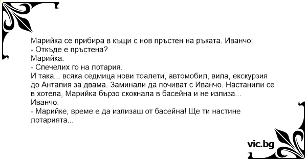 • Вицове от Facebook от нашата страница https://www.facebook.com/www.vic.bg