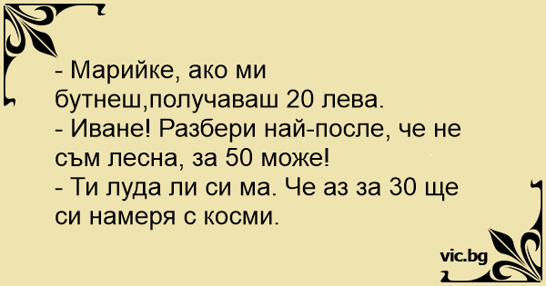 - Марийке, ако ми бутнеш,получаваш 20 лева.