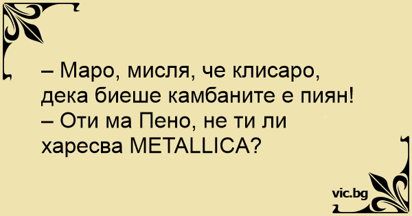 • Вицове от Facebook от нашата страница https://www.facebook.com/www.vic.bg