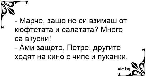 - Ами защото, Петре, другите ходят на кино с чипс и пуканки.