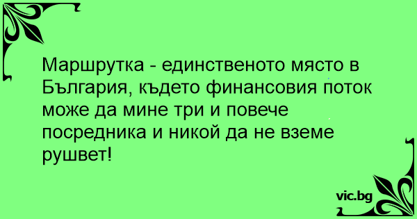Маршрутка - единственото място в България, където финансовия поток може да мине три и повече посредника и никой да не вземе рушвет!