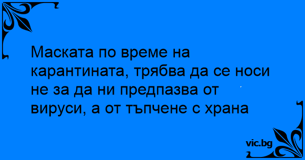 Маската по време на карантината, трябва да се носи не за да ни предпазва от вируси, а от тъпчене с храна