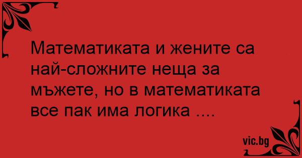 Математиката и жените са най-сложните неща за мъжете, но в математиката все пак има логика ....