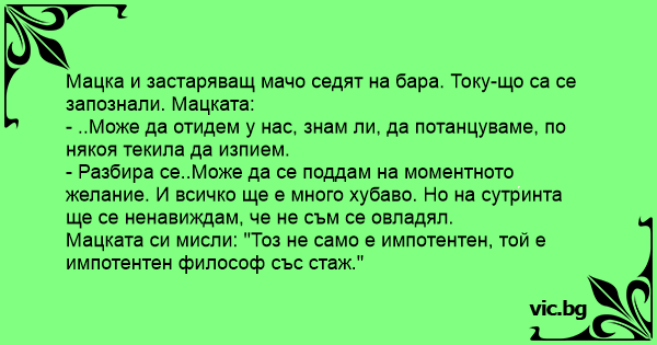 Мацката си мисли: "Тоз не само е импотентен, той е импотентен философ със стаж."