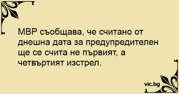 МВР съобщава, че считано от днешна дата за предупредителен ще се счита не първият, а четвъртият изстрел.
