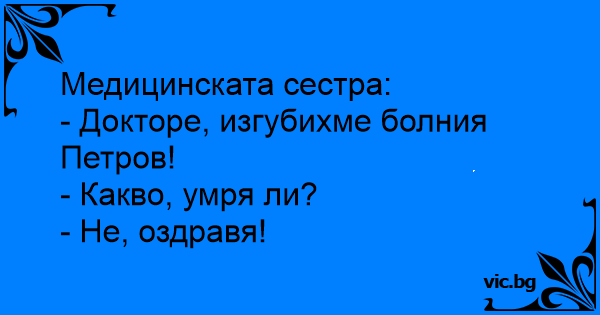 - Докторе, изгубихме болния Петров!