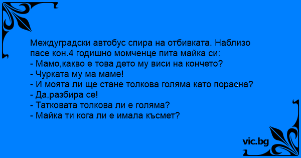 • Вицове от Facebook от нашата страница https://www.facebook.com/www.vic.bg