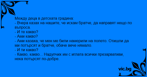 • Вицове от Facebook от нашата страница https://www.facebook.com/www.vic.bg