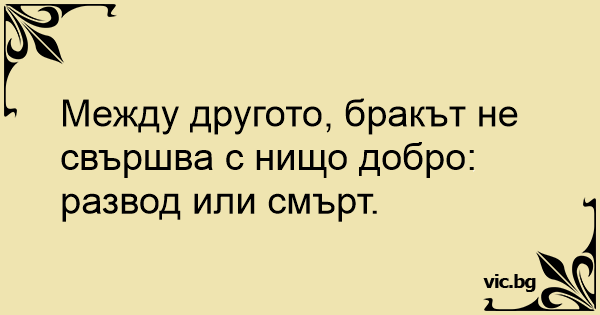 Между другото, бракът не свършва с нищо добро: развод или смърт.