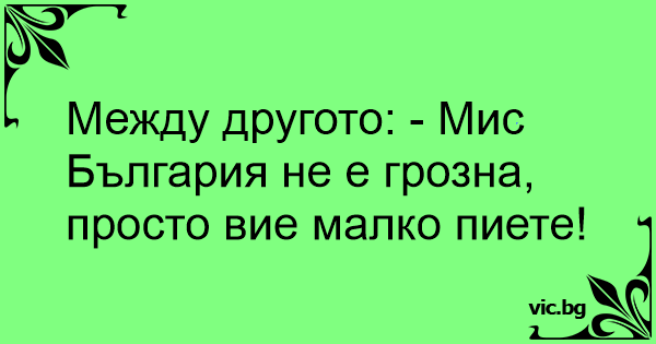 Между другото: - Мис България не е грозна, просто вие малко пиете!
