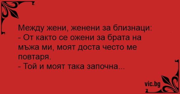 - От както се ожени за брата на мъжа ми, моят доста често ме повтаря.