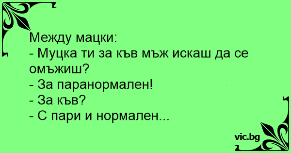 - Минчо, ти каква жена би желал да имаш? - Паранормална! - Как така? - Ами да има пари и да е нормална.