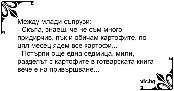 - Скъпа, знаеш, че не съм много придирчив, пък и обичам картофите, по цял месец ядем все картофи...