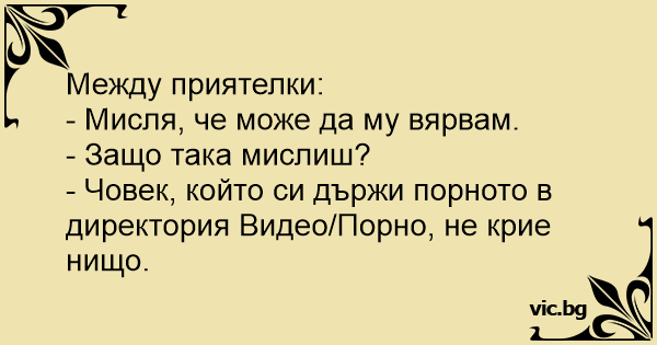 - Човек, който си държи порното в директория Видео/Пopнo, не крие нищо.