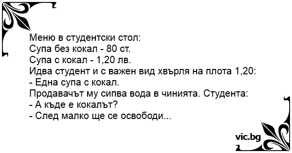 • Вицове от Facebook от нашата страница https://www.facebook.com/www.vic.bg