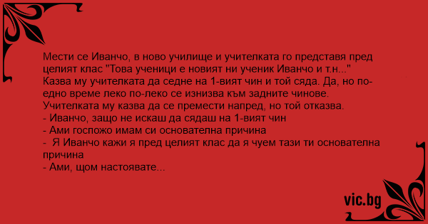 - Я Иванчо кажи я пред целият клас да я чуем тази ти основателна причина