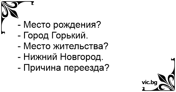 - Место рождения? - Город...