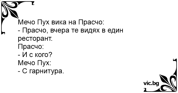 • Вицове от Facebook от нашата страница https://www.facebook.com/www.vic.bg