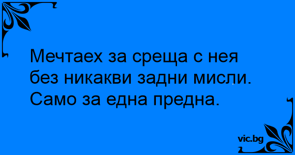 Мечтаех за среща с нея без никакви задни мисли. Само за една предна.