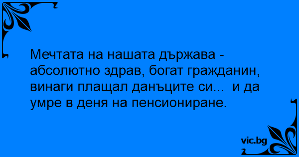 Мечтата на нашата държава - абсолютно здрав, богат гражданин, винаги плащал данъците си... и да умре в деня на пенсиониране.