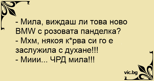 - Мила, виждаш ли това ново BMW с розовата панделка?