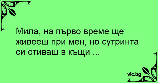 Мила, на първо време ще живееш при мен, но сутринта си отиваш в къщи ...