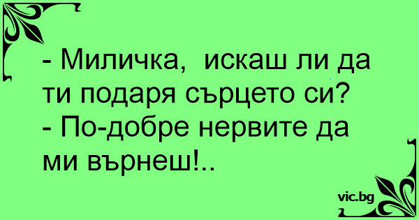 • Вицове от Facebook от нашата страница https://www.facebook.com/www.vic.bg